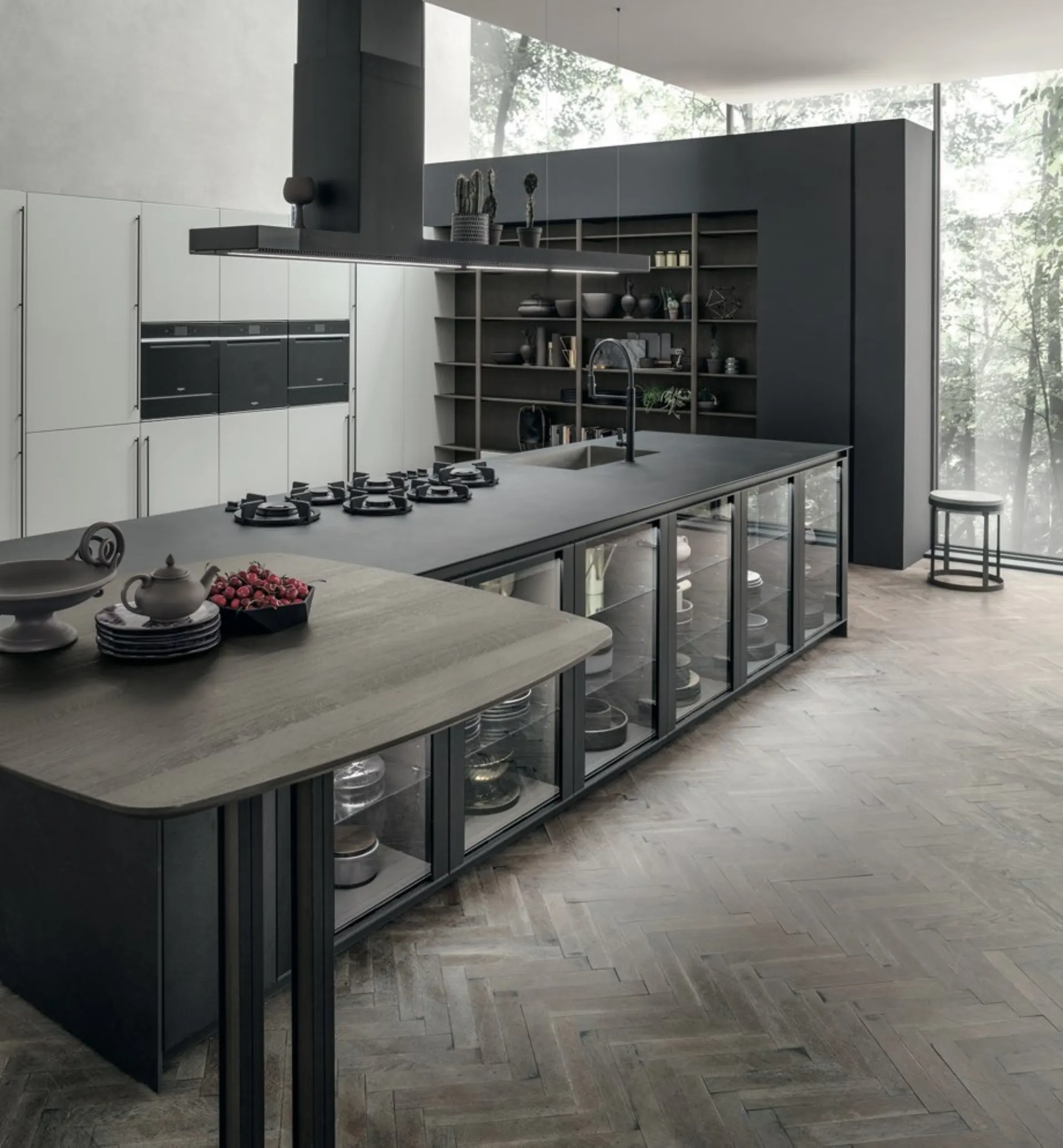 Equilibrato mix di elementi innovativi e finiture nella cucina moderna Natural di Stosa, adatta ad arredare ambienti aperti sul living.